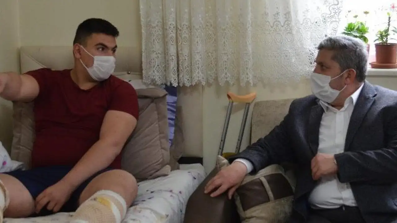 Bünyan Belediye Başkanı Özkan Altun, dün akşam saatlerinde sahipleri tarafından sokağa salınan köpeklerin saldırısı sonucu yaralanan halterci Samet Mutlu'yu evinde ziyaret ederken, hastanede bulunan Yusuf Öztürk ile de telefonla görüşerek geçmiş olsun dileklerini iletti.
