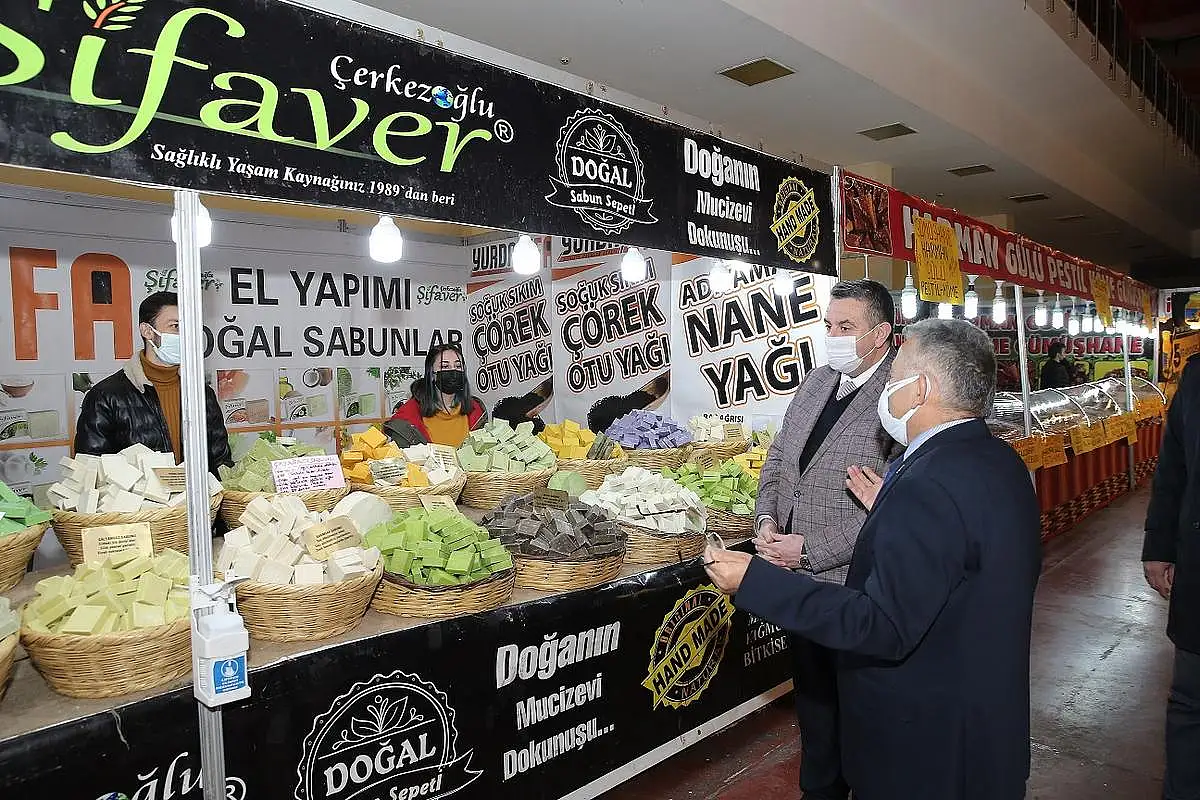 Başkan Büyükkılıç, daha sonra koronavirüs tedbirleri kapsamında Dünya Ticaret Merkezi Fuar Alanı’na kurulan Yöresel Ürünler Fuarı’nı ziyaret etti. Sun Fuarcılık Yönetim Kurulu Başkanı Mehmet Saçmacı’dan fuar ile ilgili bilgiler alan Başkan Büyükkılıç, farklı şehirlerin meşhur ürünlerinin olduğu stantları gezerek, esnaf ve vatandaşlarla sohbet etti.