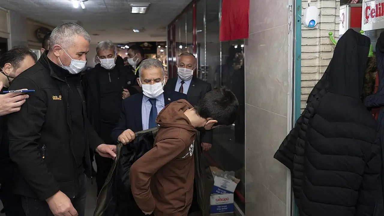 Pandemi tedbirlerini de yerinde inceleyen Başkan Büyükkılıç esnaf ve vatandaşlara maske, mesafe ve temizlik konusunda bir kez daha hatırlatmalarda bulunarak kurallara uyan vatandaşlara ve esnaflara teşekkür etti. Ayrıca ziyaret sırasında vatandaşlarla da sohbet eden Büyükkılıç, 13 yaşındaki bir çocuğa da mont hediye ederek, elleriyle montu giydirdi.
