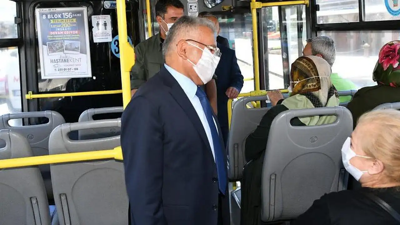 Kayseri Büyükşehir Belediye Başkanı Dr.Memduh Büyükkılıç, Cumhuriyet Meydanı'ndan geçen bir otobüse binerek, Maske, Mesafe ve Temizlik kurallarını hatırlattı.