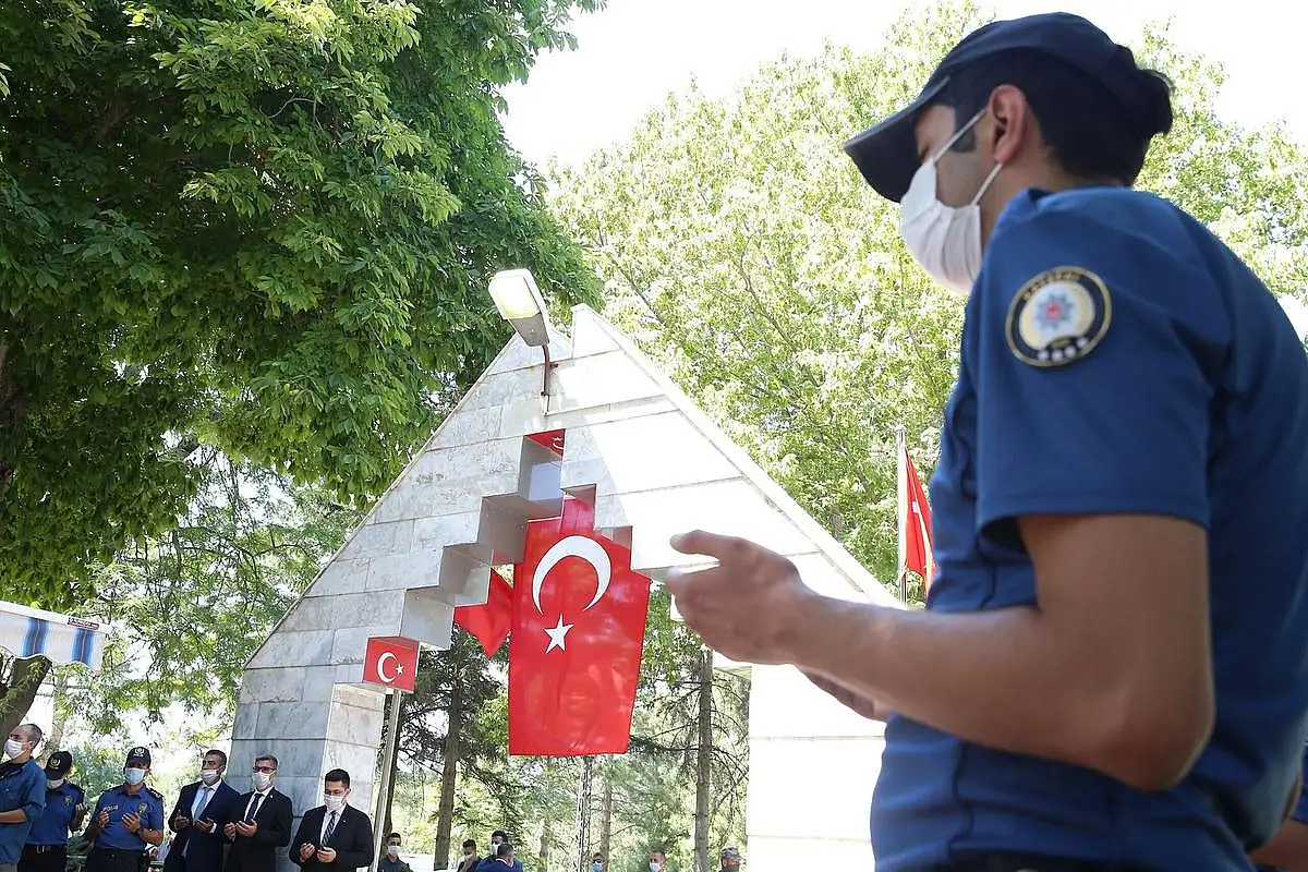 Kayseri Büyükşehir Belediye Başkanı Dr.Memduh Büyükkılıç, Vali Şehmus Günaydın ile birlikte Adıyaman'ın Sincik ilçesinde devriye görevi yaparken hain terör örgütünün saldırısı sonucu şehit düşen Taha Uluçay'ın şehadetinin 1'nci yıldönümünde Polis Şehitliğ