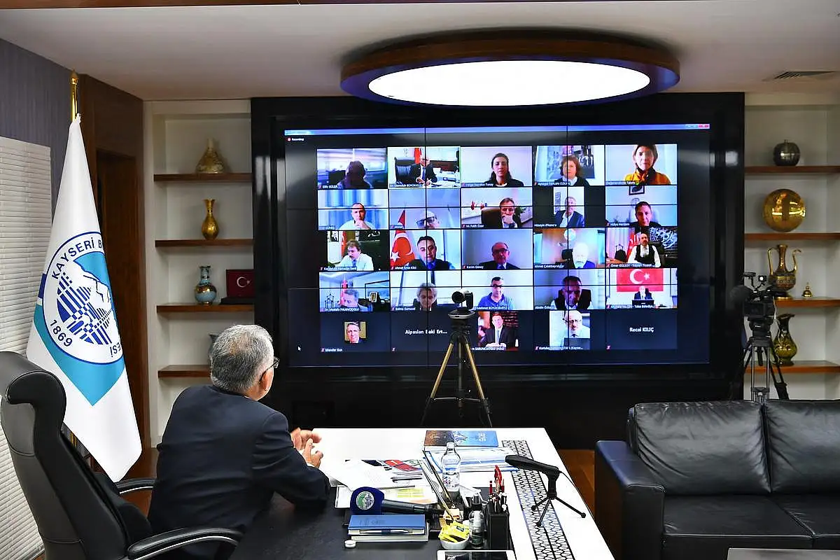 Erciyes Üniversitesi Yükseköğretim Kalite Kurulu tarafından bu yıl ilk kez başlatılan Kurumsal Akreditasyon Dış Paydaşlar Toplantısı'na video konferans yöntemi ile katılan Kayseri Büyükşehir Belediye Başkanı Dr.Memduh Büyükkılıç, 'Yerel yönetimlerle, üniv