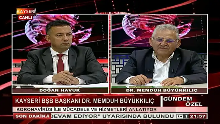 Kayseri Büyükşehir Belediye Başkanı Dr. Memduh Büyükkılıç TV 1 ve Hunat TV'de ortak yayınlanan Ramazan Sohbetleri Programına konuk oldu. Başkan Büyükkılıç, TV 1 Genel Yayın Yönetmeni Doğan Havur'un sorularını yanıtladı.