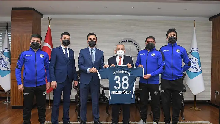 Kayseri Büyükşehir Belediye Başkanı Dr.Memduh Büyükkılıç, yeni kurulan Develi Erciyesspor Kulübü başkan ve futbolcularını makamında kabul etti.