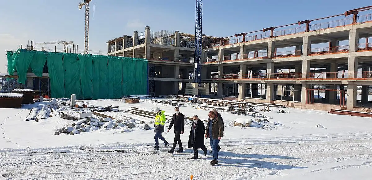 Kayseri Büyükşehir Belediye Başkanı Dr. Memduh Büyükkılıç, 8 milyon yolcuya hizmet etmesi hedeflenen ve kar yağışına rağmen inşaatı hızla devam eden Kayseri Havalimanı Yeni Terminal Binası çalışmalarını yerinde inceledi.