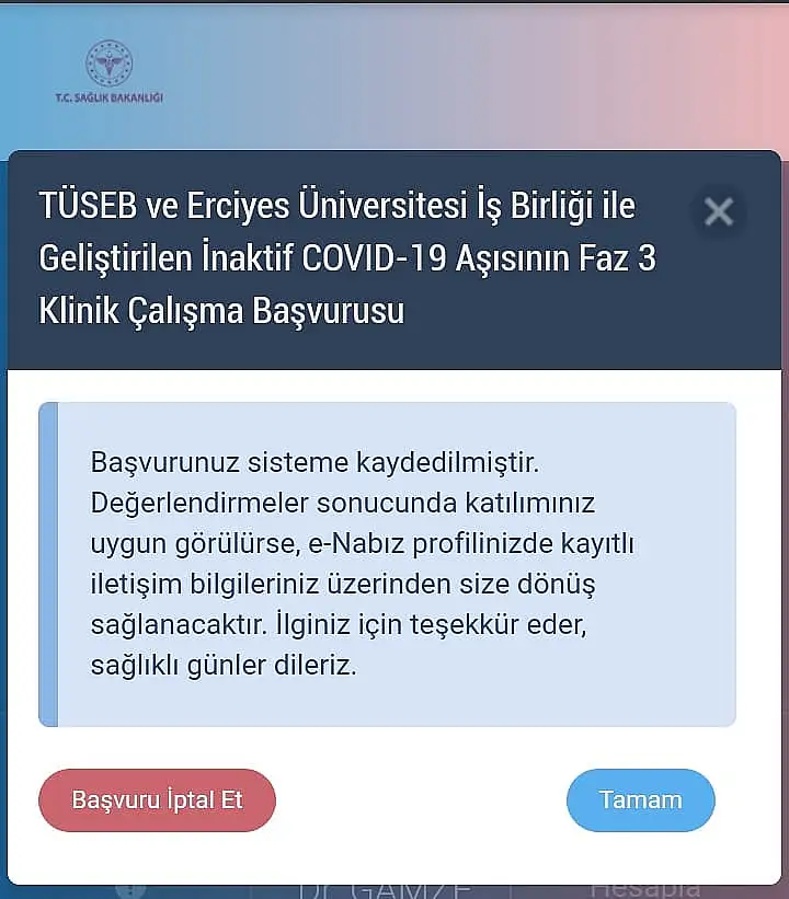 Ülkü Ocakları Kayseri İl Başkanı Ali Çelik, koronavirüse karşı Erciyes Üniversitesi’nde çalışmaları yürütülen yerli aşının faz-3 çalışmalarında gönüllü olduğunu duyurdu.