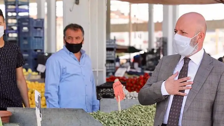 Başkan Çolakbayrakdar, zabıta ekiplerinin kontrolündeki pazar yerlerinde, maske ve sosyal mesafenin korunmasına yönelik tedbirlerin kararlılıkla uygulandığını da sözlerine ekledi.,