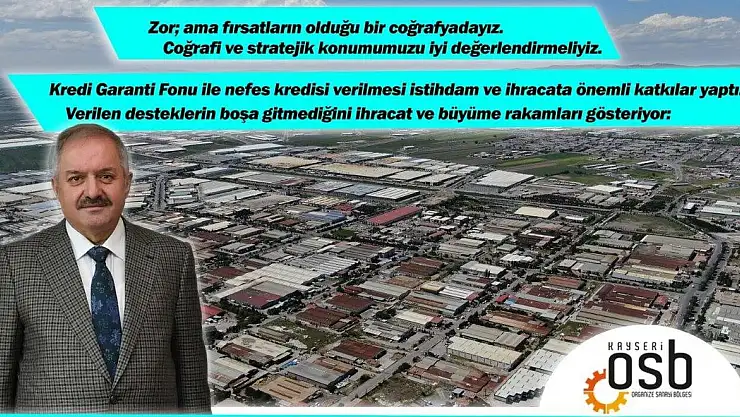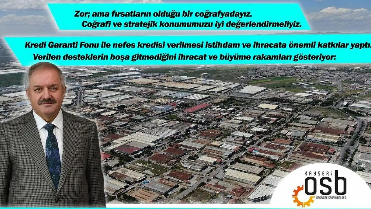Kayseri Organize Sanayi Bölgesi (OSB) Yönetim Kurulu Başkanı Tahir Nursaçan, pandemi sürecine rağmen Türk sanayicisinin üretim ve ihracattan taviz vermediğini belirtti.Türkiye'nin önündeki fırsatlara vurgu yapan Başkan Nursaçan, 'Coğrafi ve stratejik konu