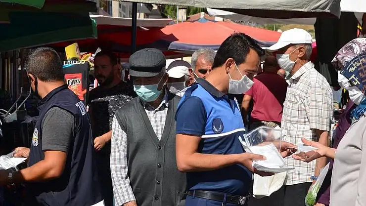 Bünyan Belediyesi Zabıta Müdürlüğü ekipleri ilçede kurulan pazarlarda denetim ve ücretsiz maske dağıtımına devam ederken, Bünyan Belediye Başkanı Özkan Altun," Maske, mesafe ve temizlik olmazsa olmazımız" dedi.