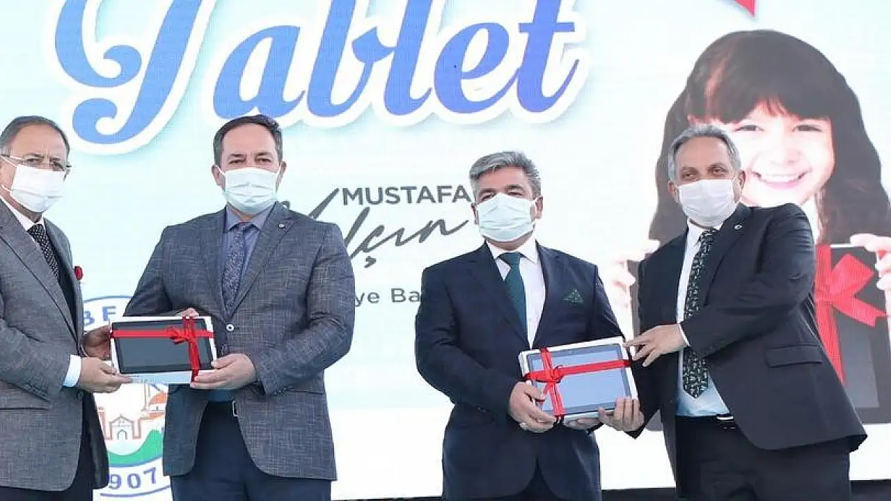 Konuşmaların ardından tabletler, ihtiyaç sahibi öğrencilere ulaştırılmak üzere okul müdürlerine teslim edildi.