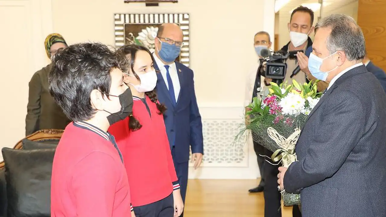 Derviş Güneş Ortaokulu öğrencileri, 24 Kasım Öğretmenler Günü münasebetiyle Talas Belediyesi’nin öğretmen başkanı Mustafa Yalçın’ı ziyaret etti.