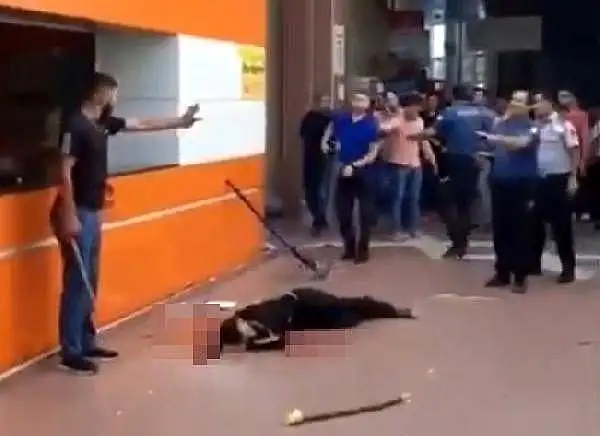 Olay yerine gelen polis ekipleri de eli bıçaklı kardeşlerin direnmesi nedeniyle yaralının yanına yaklaşamadı. Bir polis memurunun saldırgan kardeşlerden birine silah doğrultarak, teslim olmasını istediği olay yerinde, diğer polisler ise çevrede toplanan kalabalığı dağıtmaya çalıştı.