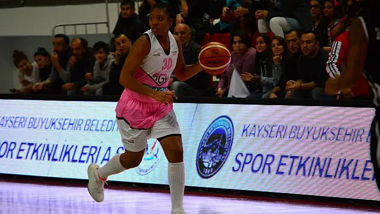Bellona AGÜ Spor adına maçın öne çıkan isimlerinden Tanisha Wright 15 sayı