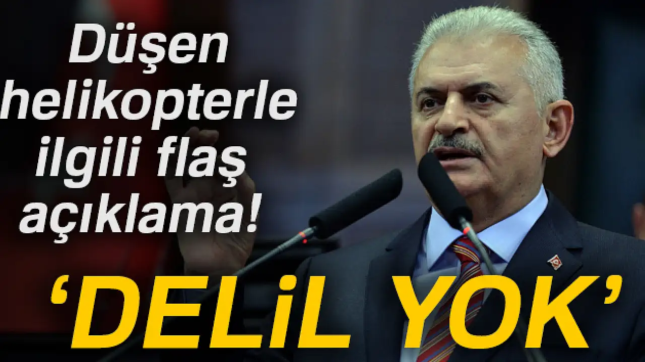 Başbakan Binali Yıldırım düşen helikopterle ilgili, 'Helikopterin düşürüldüğüne yönelik herhangi bir delil ve belirti yok' dedi.