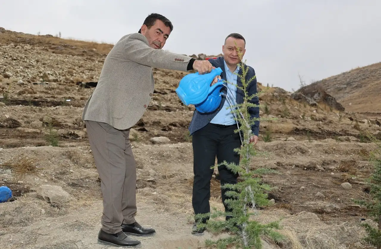 Kayseri'nin Bünyan ilçesinde bulunan Pınarbaşı Mesire Alanı'nda, 11 Kasım Milli Ağaçlandırma Günü dolayısıyla binlerce fidan toprakla buluşturuldu.