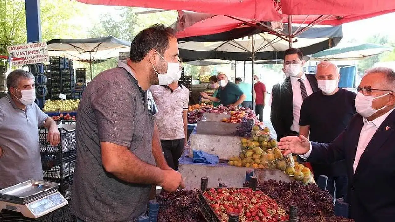 Kayseri Büyükşehir Belediye Başkanı Dr.Memduh Büyükkılıç, Aydınlıkevler Semt Pazarı'nı ziyaret ederek, esnaf ve vatandaşlarla bir araya geldi.