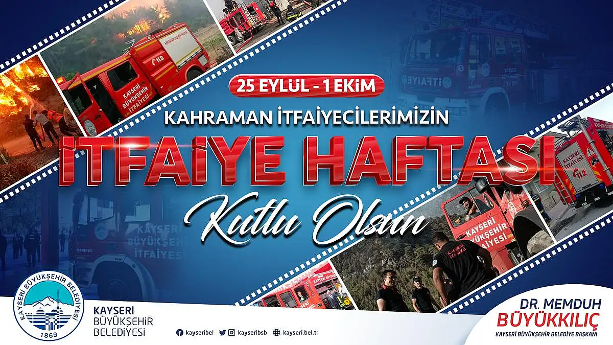 Kayseri Büyükşehir Belediye Başkanı Dr.Memduh Büyükkılıç, İtfaiye Haftası dolayısıyla yayımladığı mesajında, canlarını tehlikeye atarak, tüm canlıları koruyan ve kurtaran itfaiye ekiplerini kutlayarak, 'Bu zamana kadar yoğun, gayretli, fedakârca yaptığını