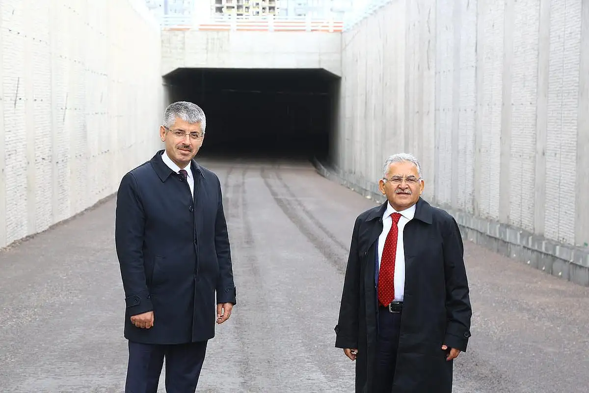 Kayseri Büyükşehir Belediye Başkanı Dr.Memduh Büyükkılıç, AK Parti Kayseri İl Başkanı Şaban Çopuroğlu ile birlikte Orgeneral Hulusi Akar Bulvarı ile Aşık Veysel Bulvarı'nın kesiştiği noktada devam eden katlı kavşak ile 2 adet U alt geçitteki çalışmaları y