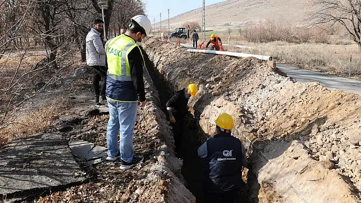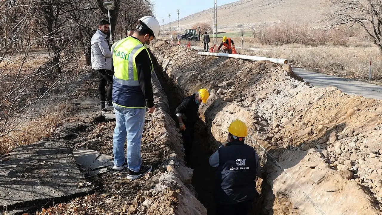 İmara açılan bölgelerde yeni konutların içme suyu ve kanalizasyon ihtiyaçlarını karşılamak için yoğun bir çaba gösteren KASKİ ekipleri, Develi İlçesi’ne bağlı Zile Mahallesi’nde yeni hatlar imal ediyor.