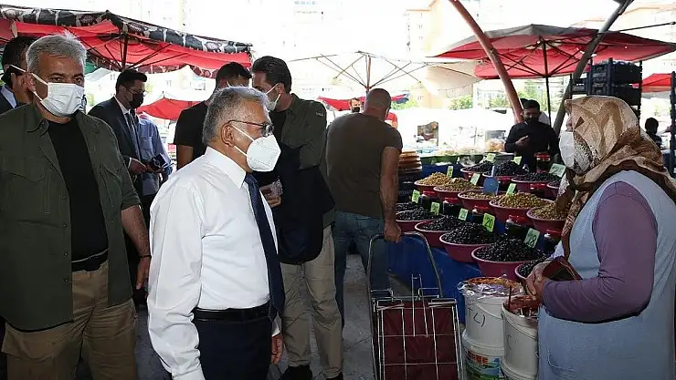 Büyükkılıç, pazarda fiyatların uygun olduğunu belirterek, “Fiyatlar uygun, mallarımız kaliteli, gerçekten çeşit bol, ürünler de bereketli. Esnaflarımıza hayırlı işler dilerken, sağduyulu hareket edip, kurallara uyup, pandemi sürecini daha hafif bir hasarla atlatma yönünde irade gösteren hemşehrilerimize de ayrıca teşekkür ediyorum. Sağ olsunlar, var olsunlar” diye konuştu.