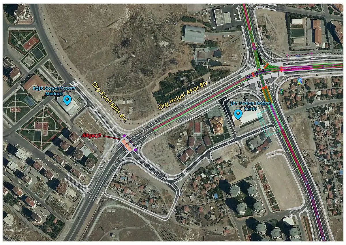 Kentin önemli ana arterlerinden olan, Hulusi Akar Bulvarı ile Âşık Veysel Bulvarı üzerinde Furkan Doğan Katlı Kavşağı'nda devam eden çalışmalara bir yeni proje daha eklendi. Yapımı devam eden Orgeneral Hulusi Akar ile Âşık Veysel Bulvarı kesişimindeki alt geçitleri tamamlayıcı nitelikte Eşref Bitlis Bulvarı’ndan Talas istikametine gidecek araçların Hulusi Akar Bulvarı üzerinden kesintisiz devam etmelerini sağlayacak projenin çalışmaları başlatıldı. Proje kapsamında halkın ulaşım konusunda mağduriyet yaşamaması için alternatif güzergâh yol yapılıyor. Bu kapsamda yaklaşık 42 metre uzunluğunda 18 metre genişliğinde kapalı kesite sahip alt geçit ile yayaların karşıya güvenli geçebilmesi için yine aynı tüp içerisinde yaya geçidi ve 2 adet asansör yapılması planlanıyor.