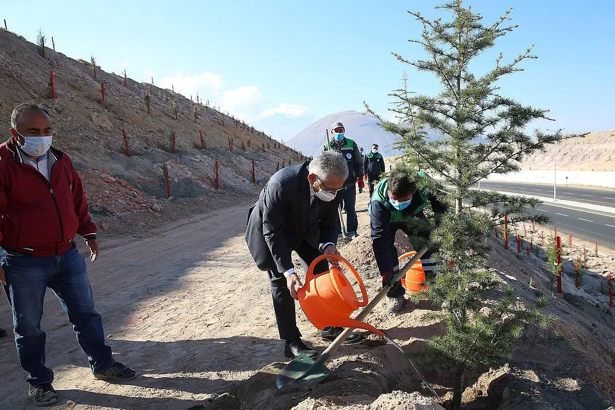 Kayseri Büyükşehir Belediye Başkanı Dr.Memduh Büyükkılıç, Kayseri'yi belediye olarak ağaçlandırma ve 100 bin fidanı toprakla buluşturma seferberliğine Derevenk Viyadüğü'nde gerçekleştirilen fidan dikimine katılarak devam etti.