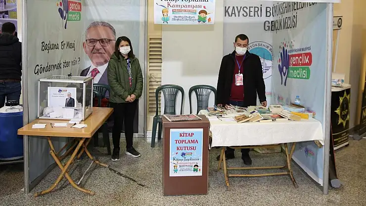 Büyükşehir Belediye Başkanı Dr. Memduh Büyükkılıç’ın gençlere verdiği önemin göstergesi olarak kurulan Büyükşehir Belediyesi Gençlik Meclisi, kütüphaneleri kısıtlı olan köy okulları için harekete geçti. Gençlik Meclisi, ‘Bağışladığın Her Kitap Geleceğe Umut Olsun’ ve ‘Bir Kitap Bir Çocuk Bir Çocuk Bir Hayat’ sloganlarıyla kitap toplama kampanyası başlattı. Kayseri geneli köy okullarındaki öğrencileri daha fazla kitapla buluşturmak amacıyla düzenlenen kitap toplama kampanyası duyarlı kitapseverlerden destek bekliyor. Kampanya için 4. Kayseri Kitap Fuarı’nda kurulan stantta köy okulları için kitap desteğinde bulunmak isteyenlerin bağışları kabul ediliyor.