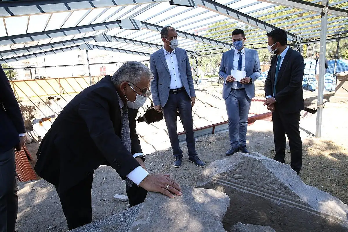 Kayseri Büyükşehir Belediye Başkanı Dr.Memduh Büyükkılıç, Seyyid Burhaneddin Hazretleri'nin de türbesinin bulunduğu mezarlık içerisinde Selçuklu dönemine ait olduğu anlaşılan ve kazı çalışmaları 40 gün süren türbeyi yerinde inceledi.
