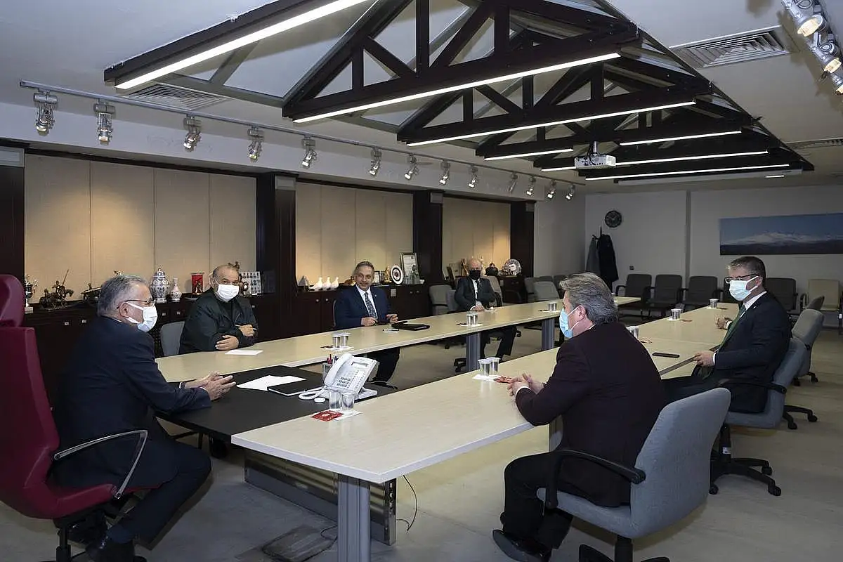Başkan Büyükkılıç, Başkanlık Toplantı Salonu’nda, AK Parti İl Başkanı Şaban Çopuroğlu, Büyükşehir Belediye Meclisi İmar ve Bayındırlık Komisyonu Başkanı Bekir Yıldız, Melikgazi Belediye Başkanı Dr. Mustafa Palancıoğlu, Kocasinan Belediye Başkanı Ahmet Çolakbayrakdar, Talas Belediye Başkanı Mustafa Yalçın ve Hacılar Belediye Başkanı Bilal Özdoğan ile bir araya geldi.