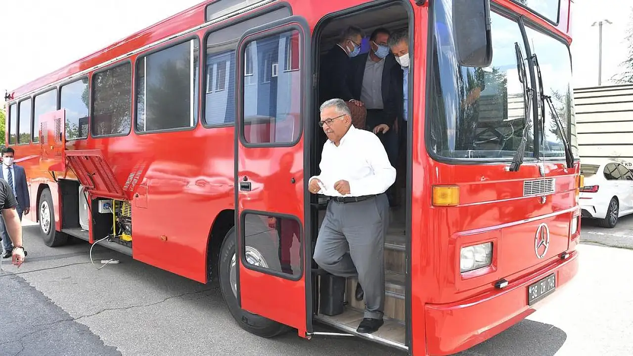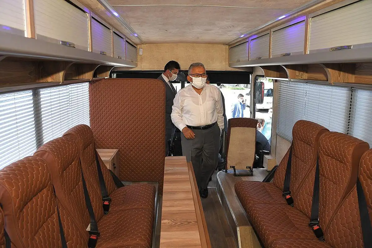 Kayseri Büyükşehir Belediye Başkanı Dr. Memduh Büyükkılıç, Makina İkmal Bakım ve Onarım Daire Başkanlığı tarafından deprem, sel gibi afet durumlarında görevli personelin olay yerinde geçirdiği gün süresince konaklamasını daha sağlıklı bir biçimde yapabilmeleri için tasarlanan afet aracını gezdi. Başkan Büyükkılıç, aynı zamanda kriz yönetimini de kolaylaştıracak afet aracının tasarlanmasının piyasa koşullarında 500 bin TL harcamayı gerektirdiğini ancak, belediye bünyesinde 150 bin TL’ye mal edildiğini belirtti.