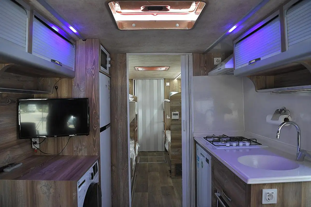 Konforlu bir şekilde hizmet verme mantığı içerisinde bir çalışma yapıldığını kaydeden Büyükkılıç, aracın içerisinin, personelin mevcut koşullarda ihtiyacını giderebilmesi adına, yemek ihtiyacı için mutfak, dinlenmeleri için ranzalar, duş ve lavabo ihtiyaç yerleri, televizyon, klima gibi birçok ihtiyaca cevap verecek şekilde oluşturulduğunu söyledi. Başkan Büyükkılıç, ayrıca afet aracının personelin görev yerlerinde her vardiyada 4 kişi olacak biçimde 3 vardiyada çalışılabilecek kapasitede düzenlendiğini belirterek, açıklamasında “Afet aracının içerisi, fırın, buzdolabı, çamaşır makinesi, bulaşık makinası, mikrodalga fırın, klima, ranza, klozet ve banyo takımı olacak şekilde dizayn edildi. Yani konforlu bir şekilde hizmet verme mantığı içerisinde, bir çalışmaya imza atılmış durumda. Ellerine sağlık. Hayırlı uğurlu olsun. Cenab-ı Allah kaza bela vermesin. Felaketlerle de bizi karşı karşıya getirmesin. Ama olduğunda da böyle bir hizmeti veren aracın olmuş olması gerçekten bizim içinde büyük bir kazanım olmuş. Değerli başkanımız Selman Bey’e, ekibine teşekkür ediyorum. Daire başkanımıza teşekkür ediyorum. Ortak aklın ürünü olan çok güzel bir proje çıkmış durumda. Bize de bunu paylaşmak düştü” ifadelerini kullandı.