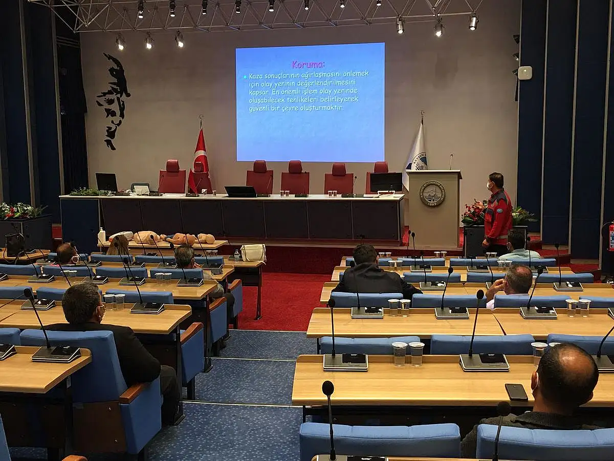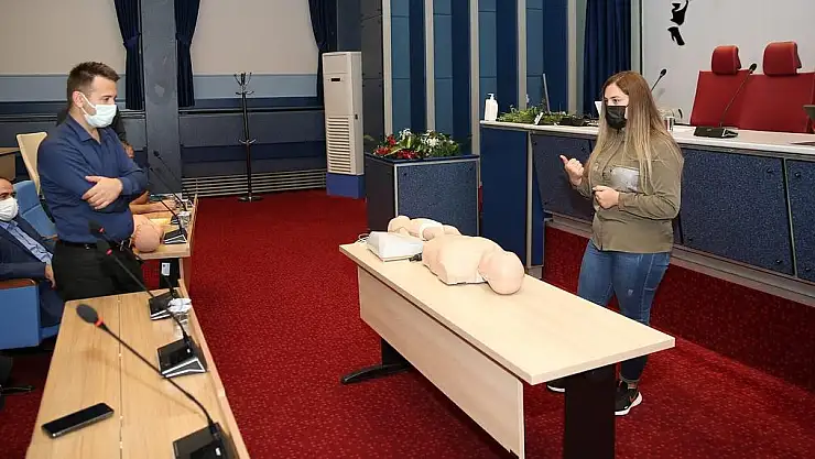 Korona virüs tedbirleri kapsamında Büyükşehir Belediyesi Meclisi’nde gerçekleşen eğitim iki gün sürdü. Uzmanlar tarafından ilk yardım konuları, hastaya ilk müdahale ve nasıl müdahale edileceği, temel yaşam gibi konular uygulamalı olarak anlatıldı.