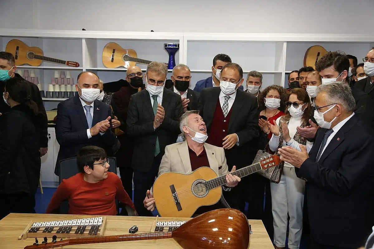 Konuşmaların ardından protokol, Besime Özderici Engelsiz Yaşam Merkezi’ni gezerek, merkez hakkında bilgiler aldılar. Gezi esnasında, müzik odasında gitar çalan Metin Şentürk, Gesi Bağları türküsünü söyledi. Şentürk’ün söylediği türküye protokol de eşlik etti.