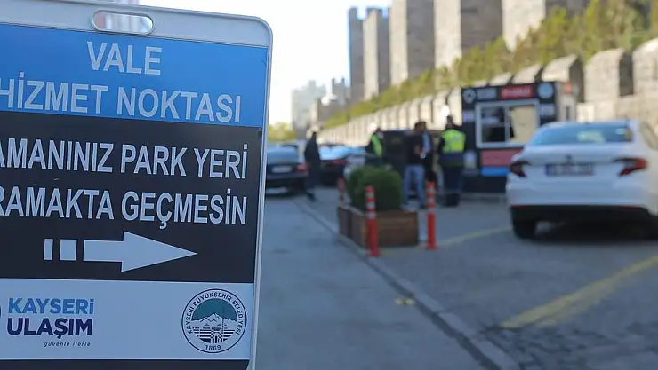 Kayseri Büyükşehir Belediyesi Ulaşım A.Ş. tarafından Kaleönü otopark alanında başlatılan ‘park et-vale uygulaması’ hizmetine vatandaşlar tarafından yoğun ilgi gösterildi. Gerek zamandan tasarruf etmek isteyen, gerekse otopark arama telaşından kurtulmak isteyen vatandaşlar arabalarını Büyükşehir Belediyesi görevlilerine bırakarak, otopark sorunu yaşamıyor.