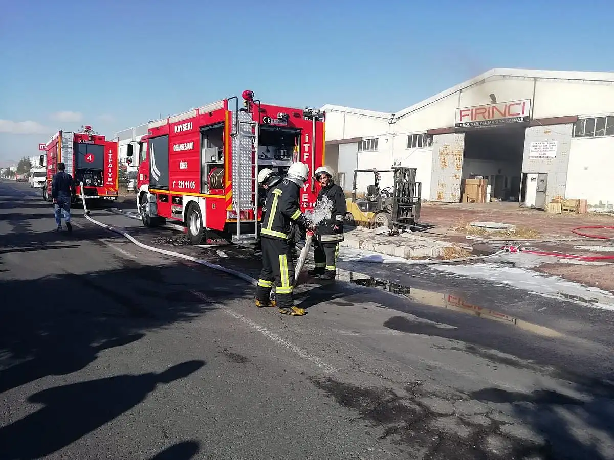 Kayseri’de bir fabrikada, çıkan yangında işçilerin çay molasında olması olası bir facianın önüne geçti.