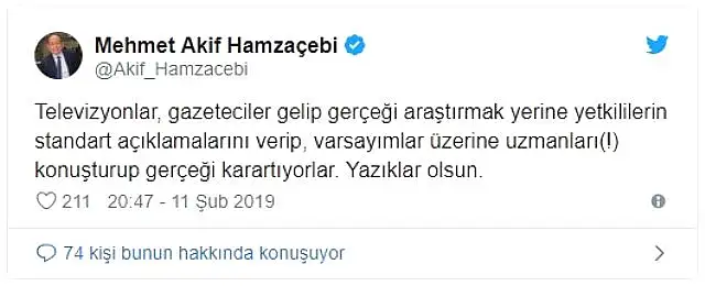 Hamzaçebi, Twitter hesabı üzerinden yaptığı açıklamada şu ifadeleri kullandı: