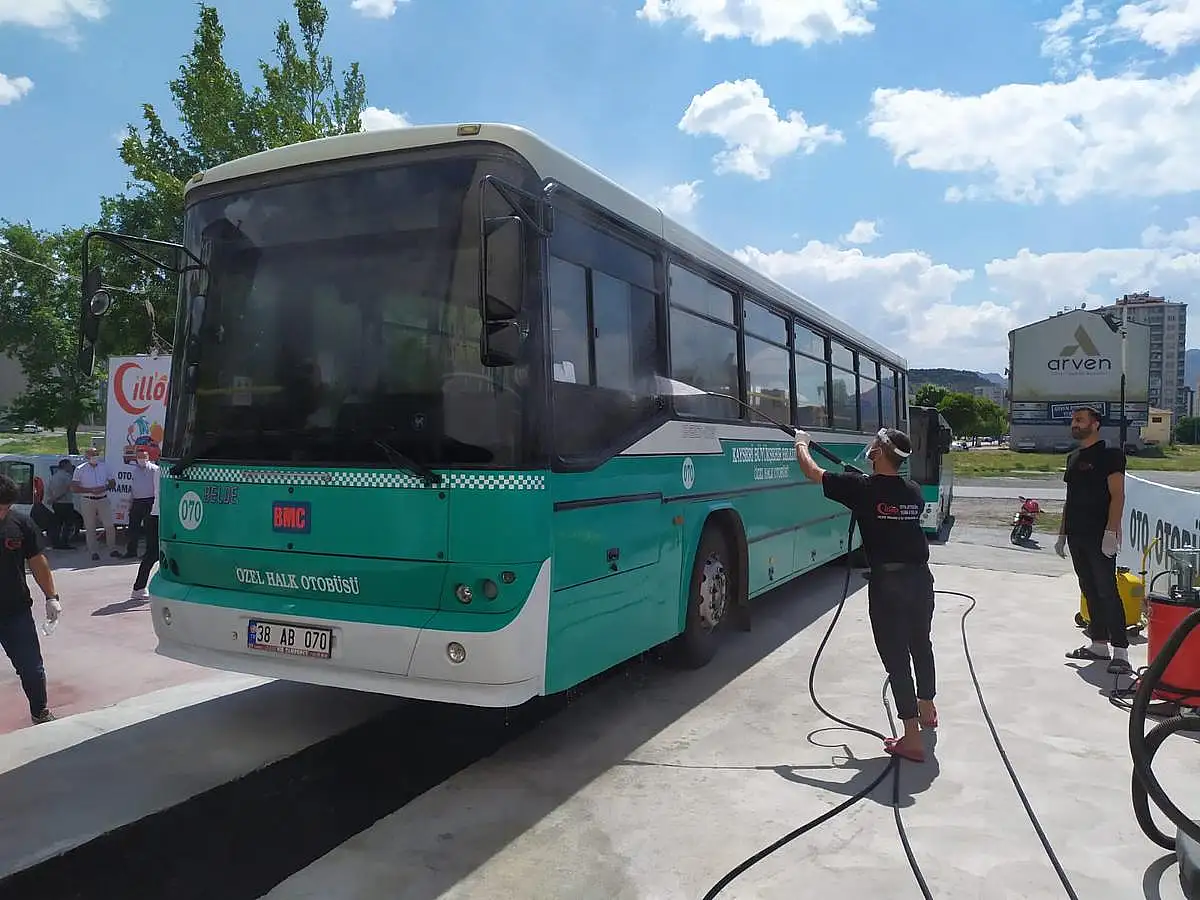 Otobüslerin dezenfektelerinin yapılmasının önemine vurgu yapan Kayseri Özel Halk Otobüsçüler Odası Başkanı Hayrullah Şahin: "Bizler vatandaşla en çok temas içersinde olan meslek grubuyuz. Bu süreçte 14 günlük karantina sürecimiz oldu. Testler yapıldı. Fakat gelmiş olduğumuz noktada seferlerimiz tekrar eski haline döndü. Otobüs yıkama işletmesi ihtiyaç olan bir alandı. Hayırlı olmasını diliyorum. Umarım daha fazla vatandaşımız hayatını kaybetmeden süreç son bulur" diye konuştu.