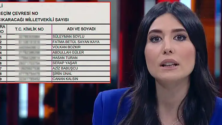 AK Parti listesini ekran başındakilere aktaran CNN Türk, Süleyman Soylu başta olmak üzere birçok milletvekili adayının T.C. kimlik numarasını açık açık yayınladı.