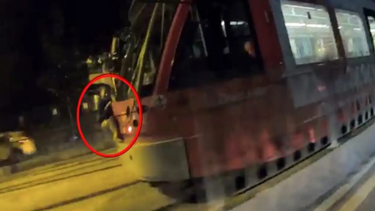 İstanbul'da bir motosiklet sürücüsü, Bağcılar-Kabataş seferini yapan tramvaya asılan küçük bir çocuğu görünce şaşkına döndü.Küçük çocuğun hareket halinde tramvaya tutunarak gerçekleştirdiği tehlikeli yolculuk kask kamerasına yansıdı.