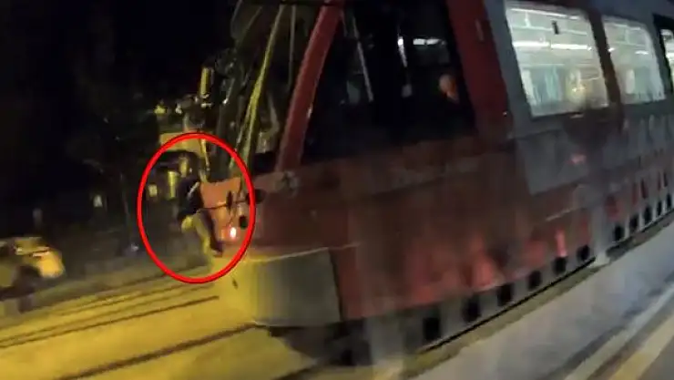 İstanbul'da bir motosiklet sürücüsü, Bağcılar-Kabataş seferini yapan tramvaya asılan küçük bir çocuğu görünce şaşkına döndü. Küçük çocuğun hareket halinde tramvaya tutunarak gerçekleştirdiği tehlikeli yolculuk kask kamerasına yansıdı.
