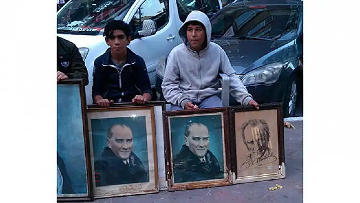 ÇOCUKLAR ÇÖPE ATILAN ATATÜRK RESİMLERİNE SAHİP ÇIKTI