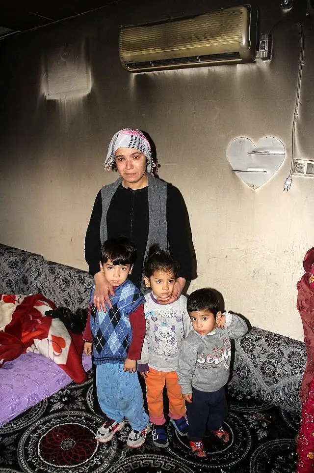Adana'da sabaha karşı evlerinde çıkan yangında 3 çocuğunu zor kurtaran ancak eşyaları küle dönen kadın gözyaşlarına boğuldu.