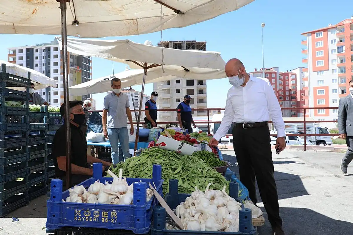 Koronavirüs (Kovid-19) salgının görülmesinin ardından yaptığı hizmetlerle ve açıklamalarıyla dikkat çeken Kocasinan Belediye Başkanı Ahmet Çolakbayrakdar, son olarak vatandaşların yoğun olduğu semt pazarını ziyaret ederek, maske, mesafe ve temizlik hatırl