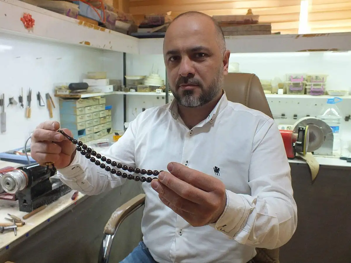 CUMHURBAŞKANI ERDOĞAN İÇİN VİŞNE MERMERİNDEN 'TESPİH' YAPTI