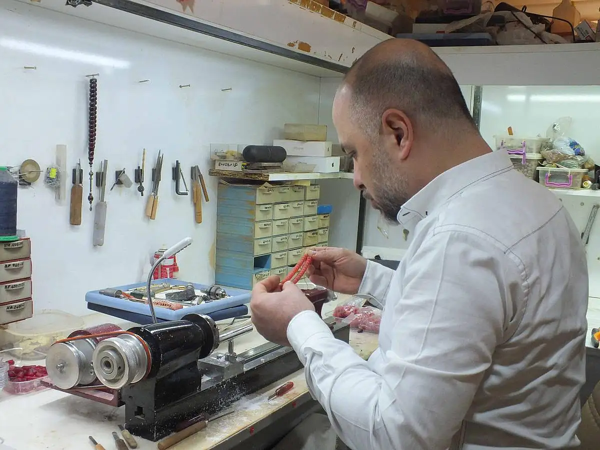 Dünyada sadece Elazığ'da çıkan ve bir çok ülkede önemli mekanlarda kullanılan vişne mermerin Cumhurbaşkanı Recep Tayyip Erdoğan'a hediye edilmek üzere tespih yapıldı.Tespit ustası Tunahan Tanyıldızı, yaptıkları tespihin bugün kente gelecek olan Cumhurbaşk