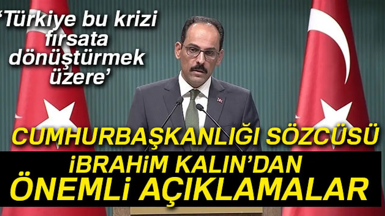 Amerikan yönetiminin son günlerde gayrimeşru irrasyonel bir takım tedbir ve tepkileri neticesinde döviz kurunda dalgalanmalar yaşandığını kaydeden ve bu dalgalanmaların Türk ekonomisinin bünyesi ile objektif ve nesnel şartları ile bir ilgisi olmadığını, büyük oranda bir ekonomik savaş ve psikolojik algı operasyonu çerçevesinde adımlar atıldığını kaydeden Kalın, "İlgili bütün kurumlarımızın, iş çevrelerimizin aldığı tedbirler, milletimizin bu konuyu sahiplenmesi neticesinde iyiye doğru bir gidişin dün itibariyle başladığını görüyoruz. Türk ekonomisinin temelleri, bünyesi sağlamdır" diye konuştu.