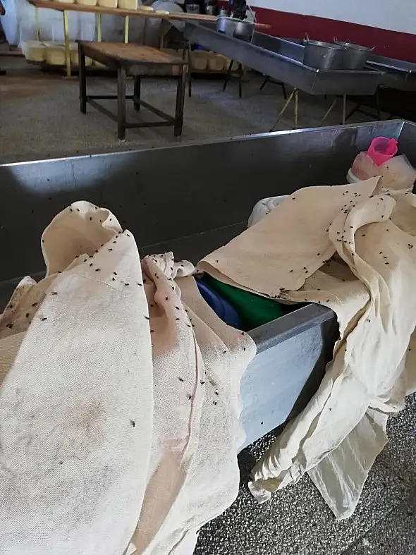 Üretim yerinde halk sağlığını tehdit eden alanların olduğunu ve kaşar peynir yapımında kullanılan süt tanklarının içinin sineklerle dolu olduğunu tespit eden ekipler, olay yerine İl ve İlçe Gıda Tarım ve Hayvancılık Müdürlüğü ekiplerini çağırdı.