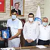 Şube Başkanı Çelik Belediye Başkanı Aksoy’a günün anısına plaket hediye etti.
