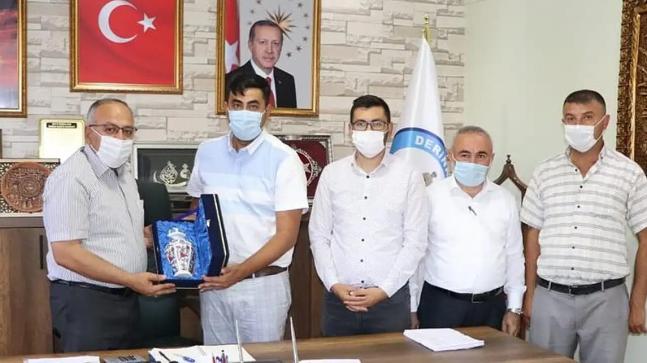 Derinkuyu Belediyesi Başkanlık makamında yapılan törene Belediye Başkanı Bülent Aksoy, Hak-İş Konfederasyonu