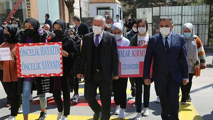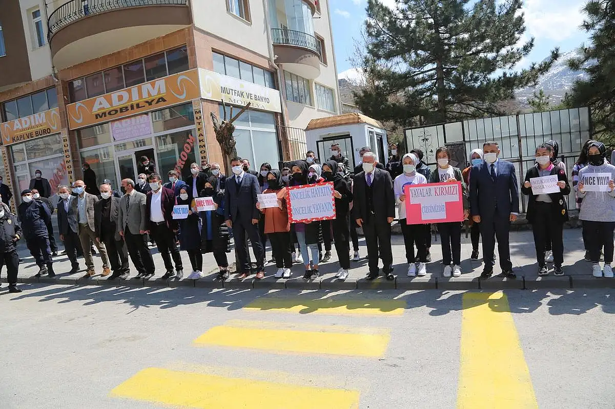 İçişleri Bakanlığı tarafından yaya önceliği konusunda farkındalık yaratmak amacıyla başlattığı kırmızı çizgi uygulamasına Develi'de katıldı.